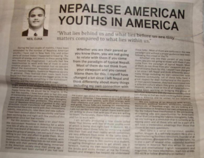 ARTICLE BY NEPRICAN on Vishwa Sandesh New York about One-POint Films, MAKE THAT MONEY and NEPALESE-AMERICAN YOUTHS